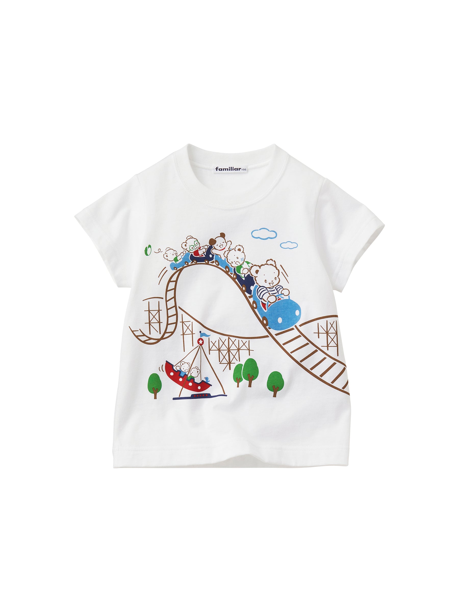 ファミリア定番のアイテム、「ファミ&リア」おはなしTシャツ。こちらはジェットコースターバージョン。遊園地での楽しいストーリーを膨らませて、赤ちゃんへの語りかけもできますよ。
