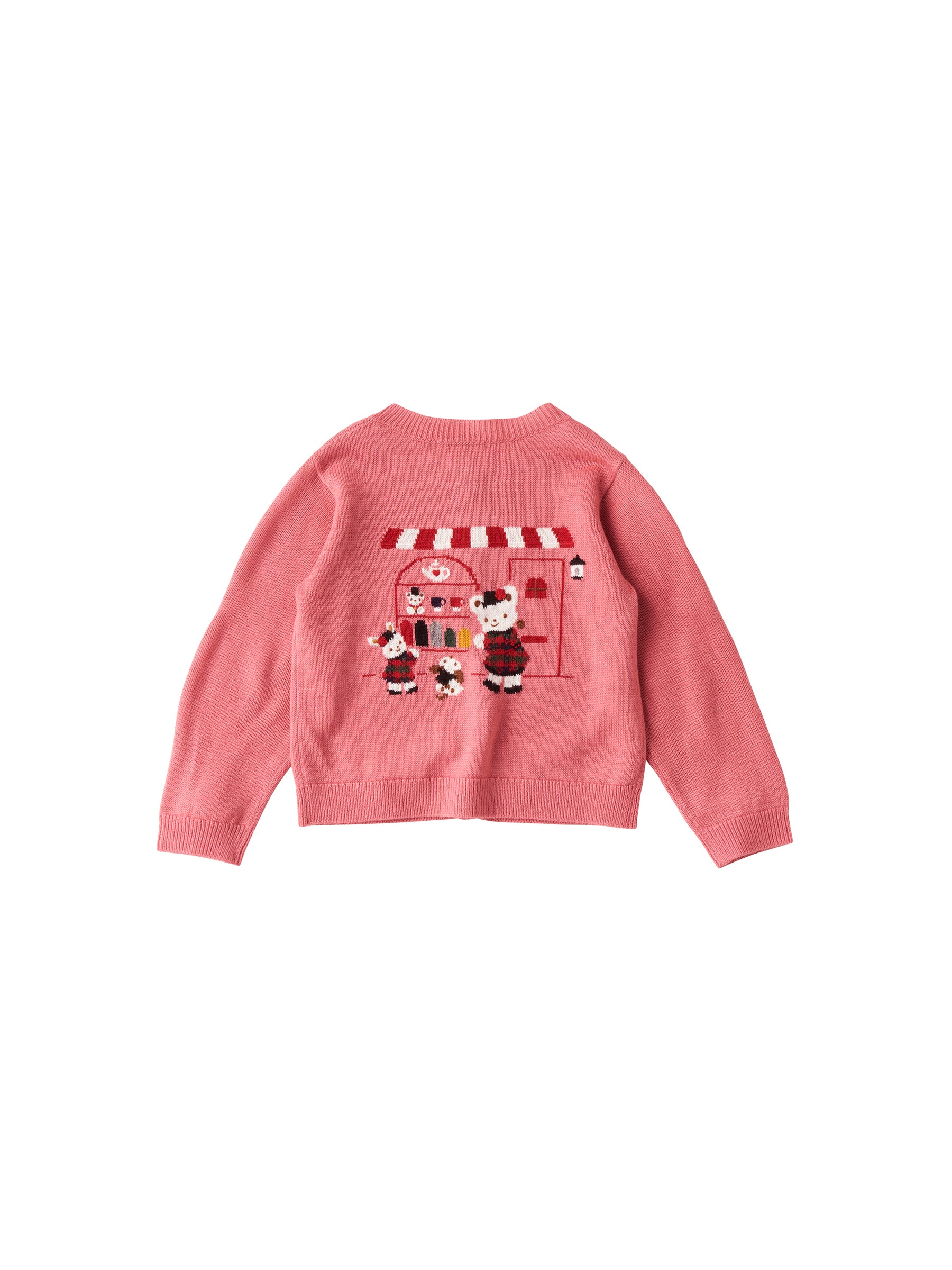 顔まわりがパッと華やぐピンクのカーディガン。コットン素材でお洗濯しやすく、背中デザインのロンドン観光を楽しむリアちゃんは春のお散歩にもぴったりです。短すぎないちょうど良いサイズ感が嬉しい。