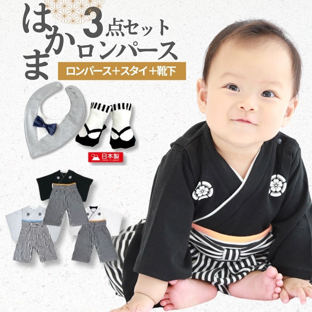 ベビー袴ロンパース 3点セット