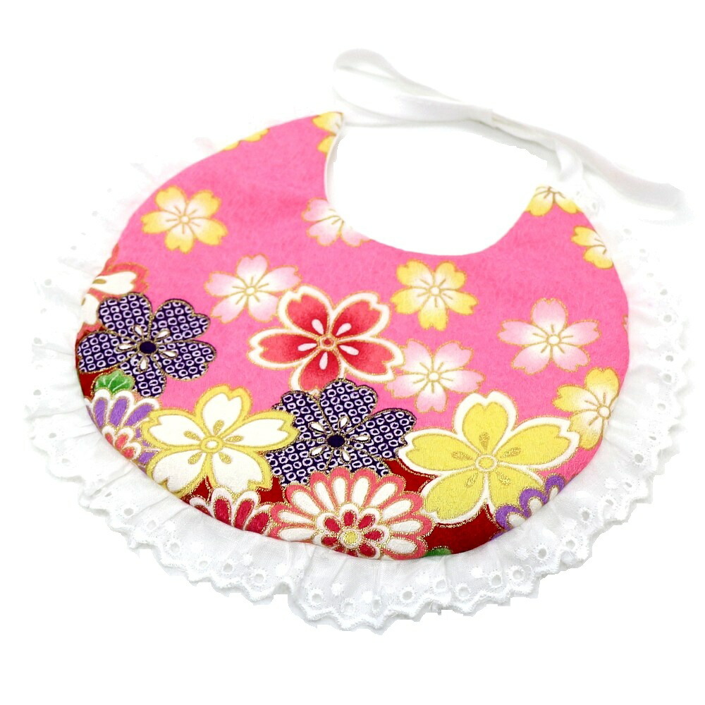 日本製 京友禅 晴れ着まるスタイ 吉祥花柄 ピンク
