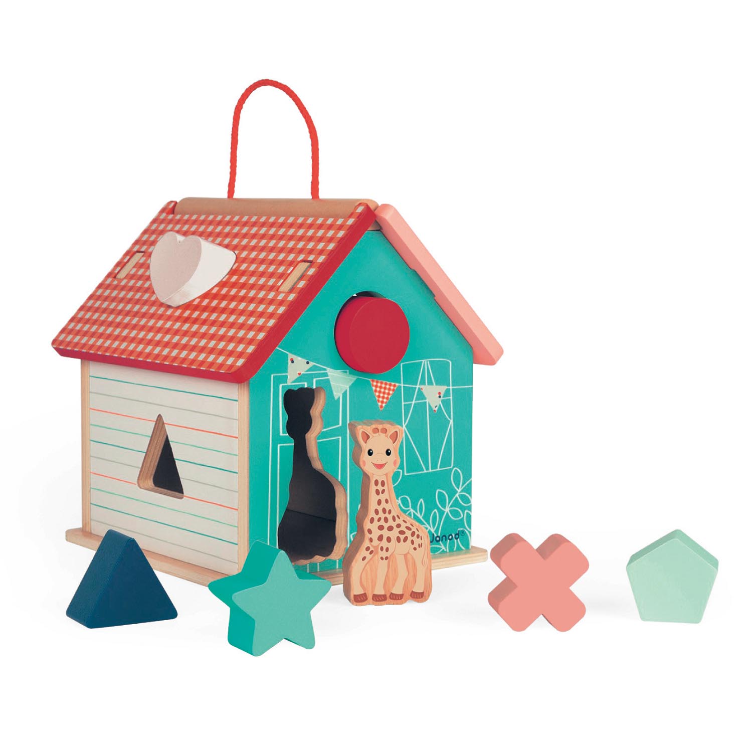ベビートイとして世界中で愛されるキリンのソフィーの型はめパズル。お家型のボックスはまるでドールハウスのような可愛さでカラフルな色使いも素敵です。